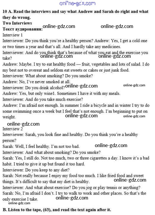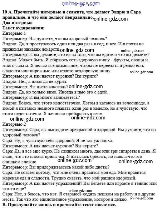 Готовые домашние задания по Английскому языку за 8 класс Учебник Афанасьева, Михеева Новый курс 2017 - Step 2 Unit 5. Keeping Fit 10