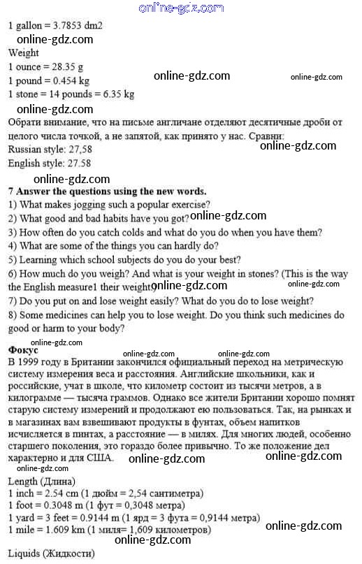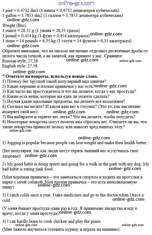 Готовые домашние задания по Английскому языку за 8 класс Учебник Афанасьева, Михеева Новый курс 2017 - Step 2 Unit 5. Keeping Fit 7