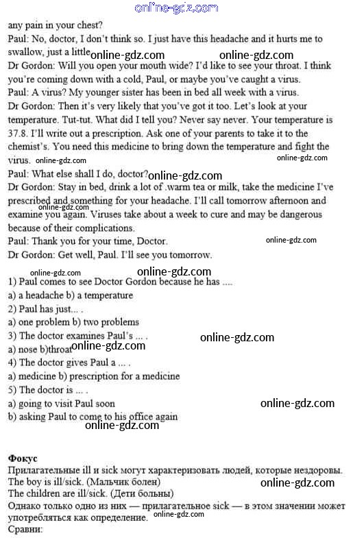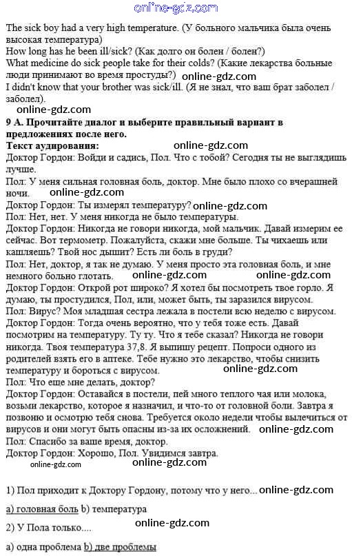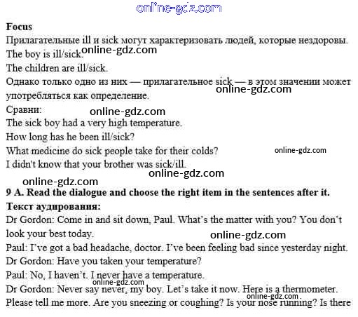 Готовые домашние задания по Английскому языку за 8 класс Учебник Афанасьева, Михеева Новый курс 2017 - Step 3 Unit 5. Keeping Fit 9