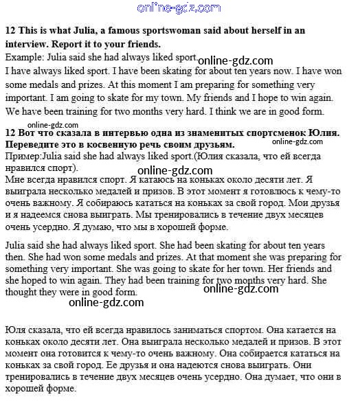 Готовые домашние задания по Английскому языку за 8 класс Учебник Афанасьева, Михеева Новый курс 2017 - Step 4 Unit 5. Keeping Fit 12