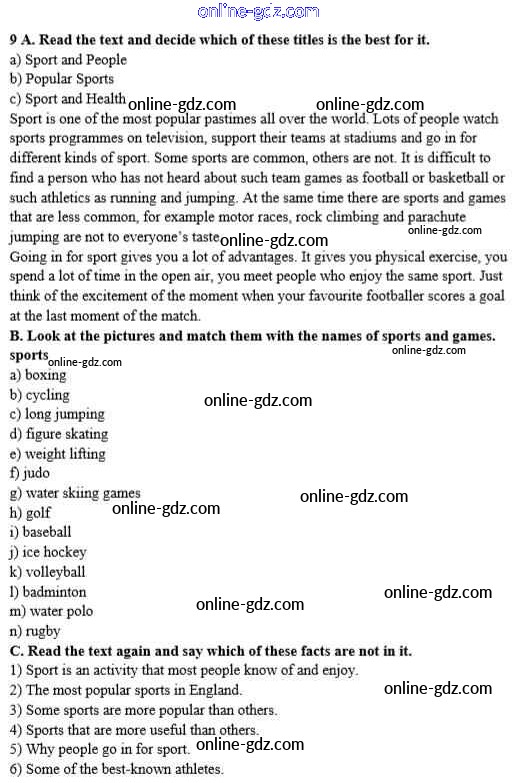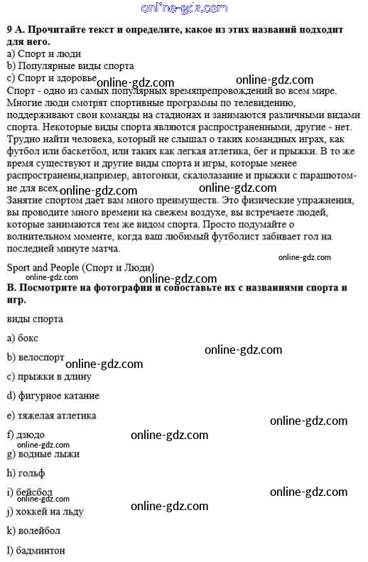 Готовые домашние задания по Английскому языку за 8 класс Учебник Афанасьева, Михеева Новый курс 2017 - Step 4 Unit 5. Keeping Fit 9