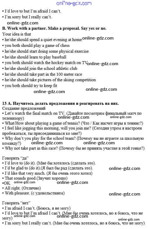 Готовые домашние задания по Английскому языку за 8 класс Учебник Афанасьева, Михеева Новый курс 2017 - Step 5 Unit 5. Keeping Fit 13