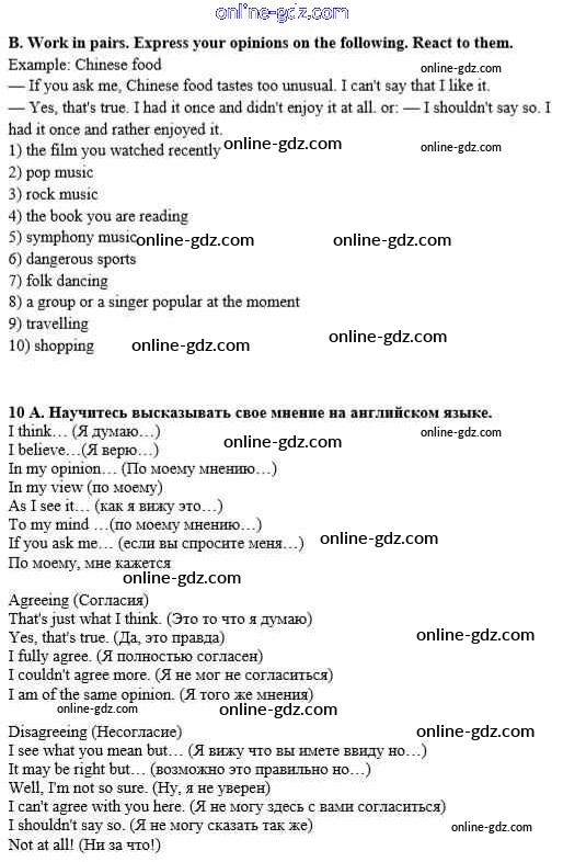 Готовые домашние задания по Английскому языку за 8 класс Учебник Афанасьева, Михеева Новый курс 2017 - Step 5 Unit 6. Our Favourite Pastimes 10