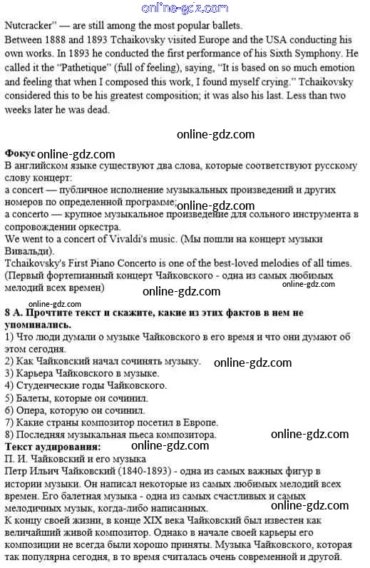 Готовые домашние задания по Английскому языку за 8 класс Учебник Афанасьева, Михеева Новый курс 2017 - Step 5 Unit 6. Our Favourite Pastimes 8