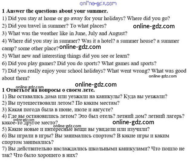 Готовые домашние задания по Английскому языку за 8 класс Учебник Афанасьева, Михеева Rainbow 2016 - Step 1 Unit 1. Sport and outdoor activities 1