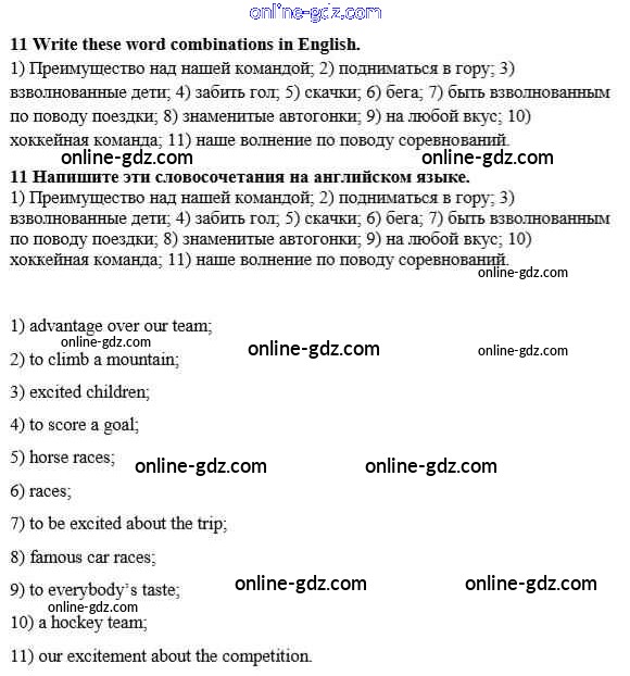 Готовые домашние задания по Английскому языку за 8 класс Учебник Афанасьева, Михеева Rainbow 2016 - Step 2 Unit 1. Sport and outdoor activities 11