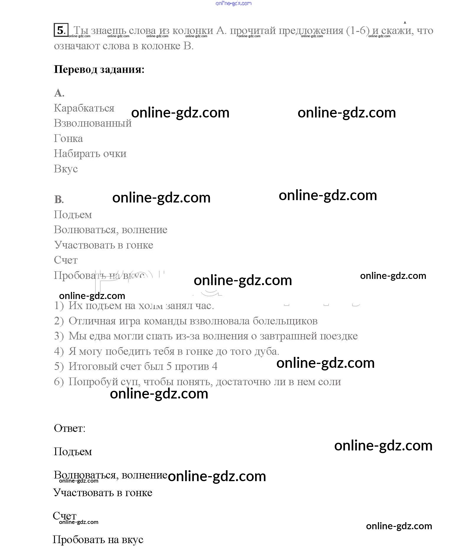 Готовые домашние задания по Английскому языку за 8 класс Учебник Афанасьева, Михеева Rainbow 2016 - Step 2 Unit 1. Sport and outdoor activities 5