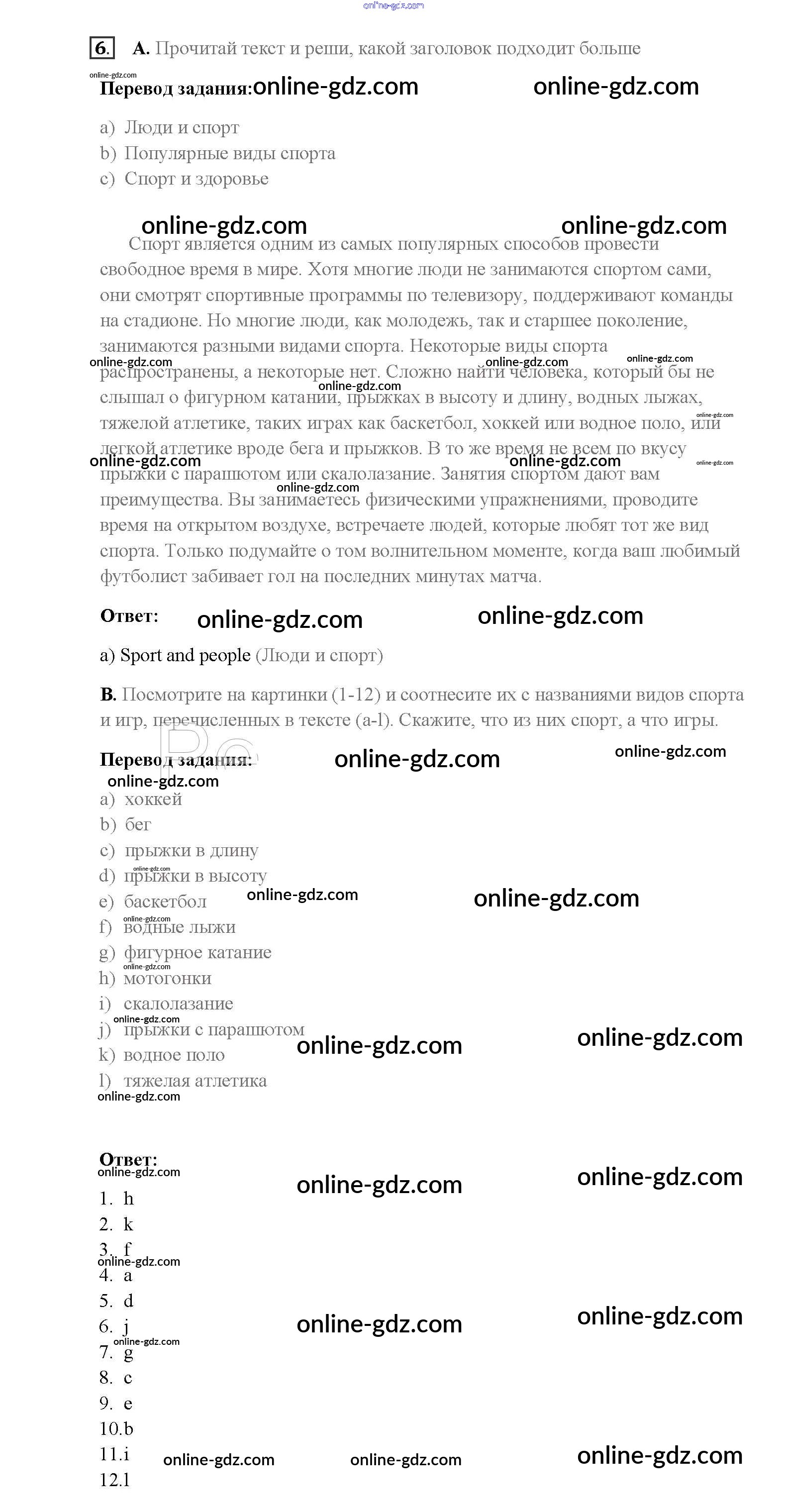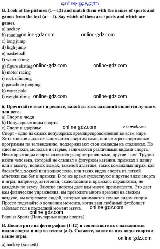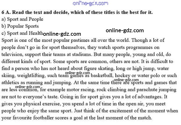 Готовые домашние задания по Английскому языку за 8 класс Учебник Афанасьева, Михеева Rainbow 2016 - Step 2 Unit 1. Sport and outdoor activities 6