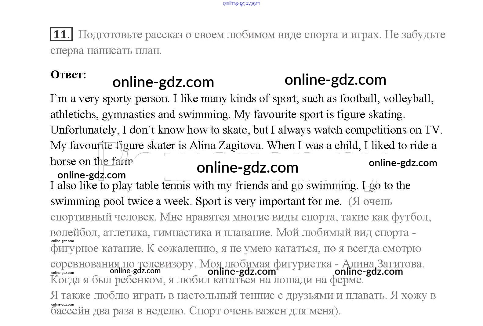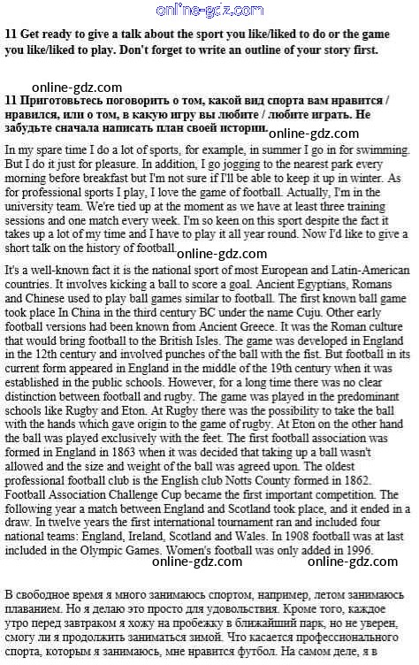 Готовые домашние задания по Английскому языку за 8 класс Учебник Афанасьева, Михеева Rainbow 2016 - Step 3 Unit 1. Sport and outdoor activities 11