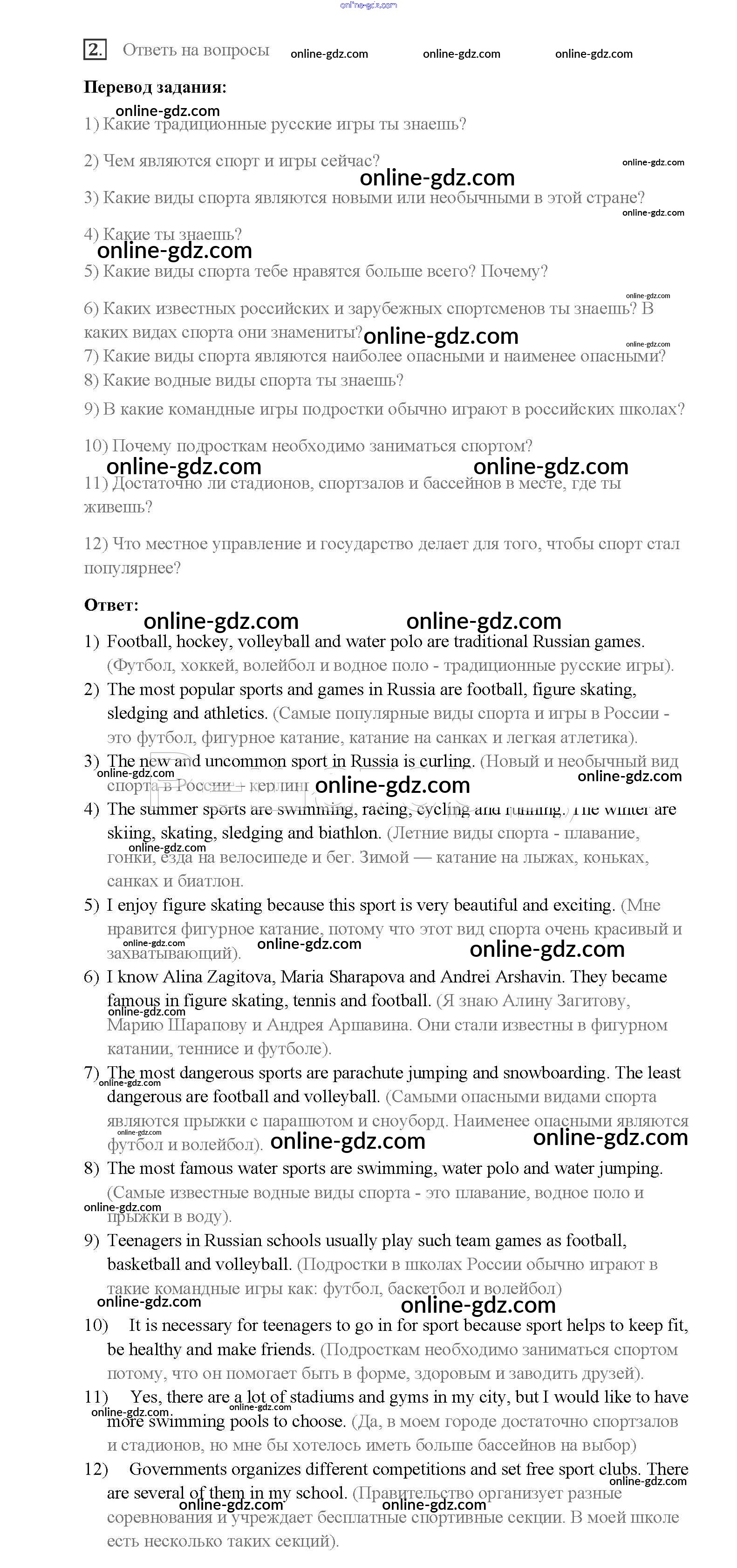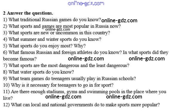 Готовые домашние задания по Английскому языку за 8 класс Учебник Афанасьева, Михеева Rainbow 2016 - Step 3 Unit 1. Sport and outdoor activities 2
