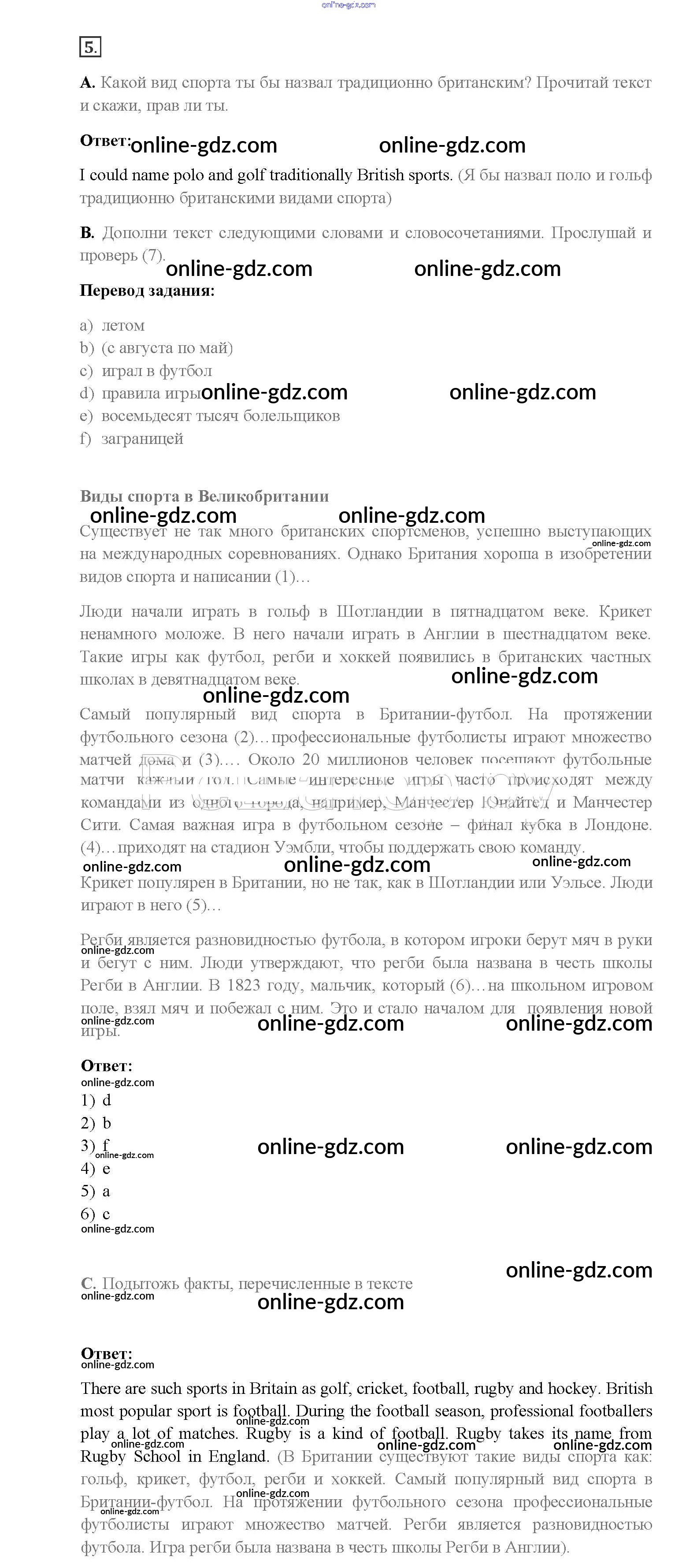 Готовые домашние задания по Английскому языку за 8 класс Учебник Афанасьева, Михеева Rainbow 2016 - Step 3 Unit 1. Sport and outdoor activities 5