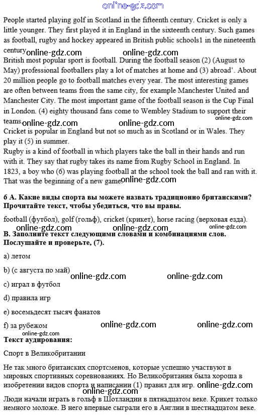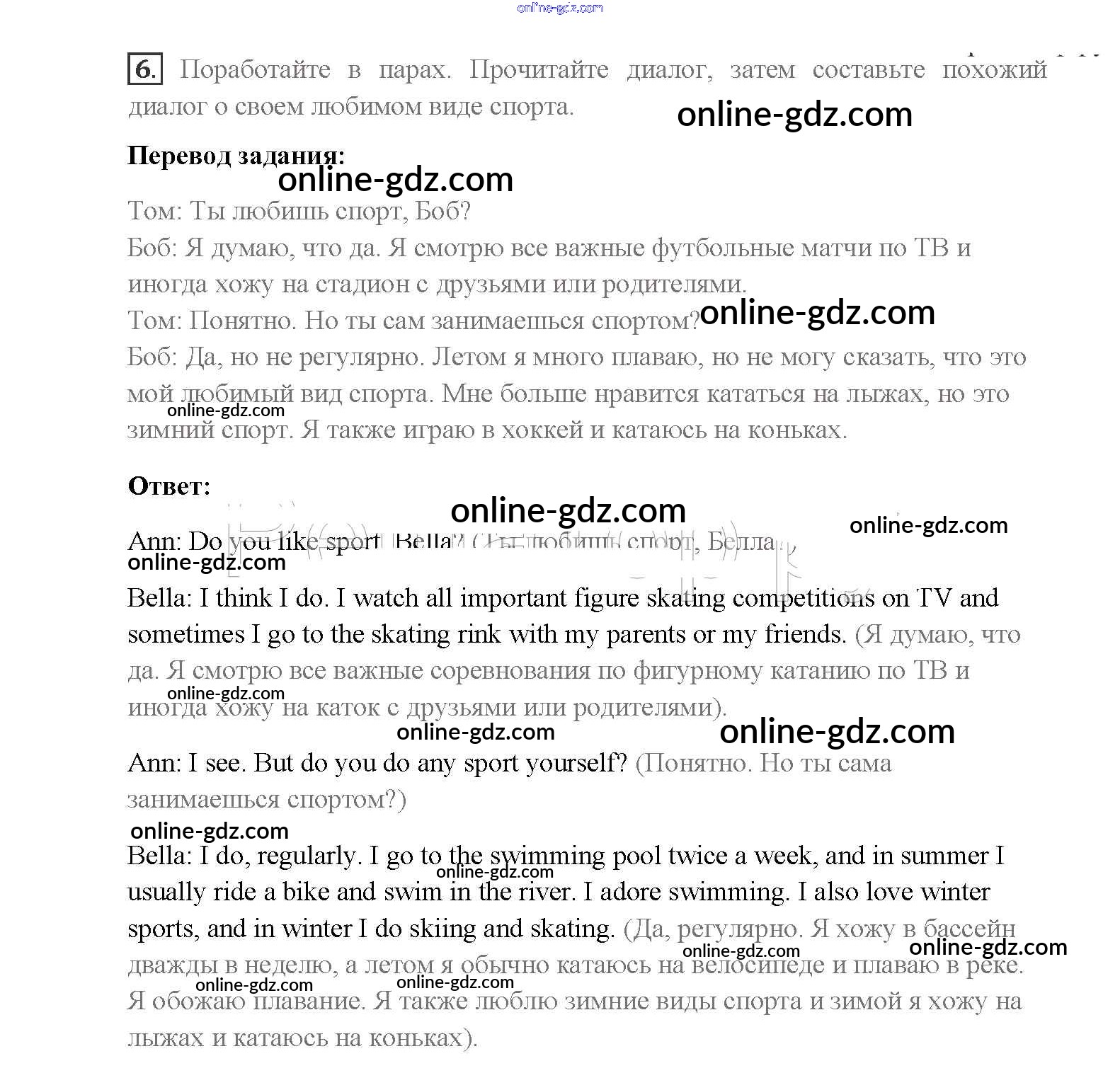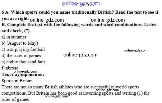Готовые домашние задания по Английскому языку за 8 класс Учебник Афанасьева, Михеева Rainbow 2016 - Step 3 Unit 1. Sport and outdoor activities 6
