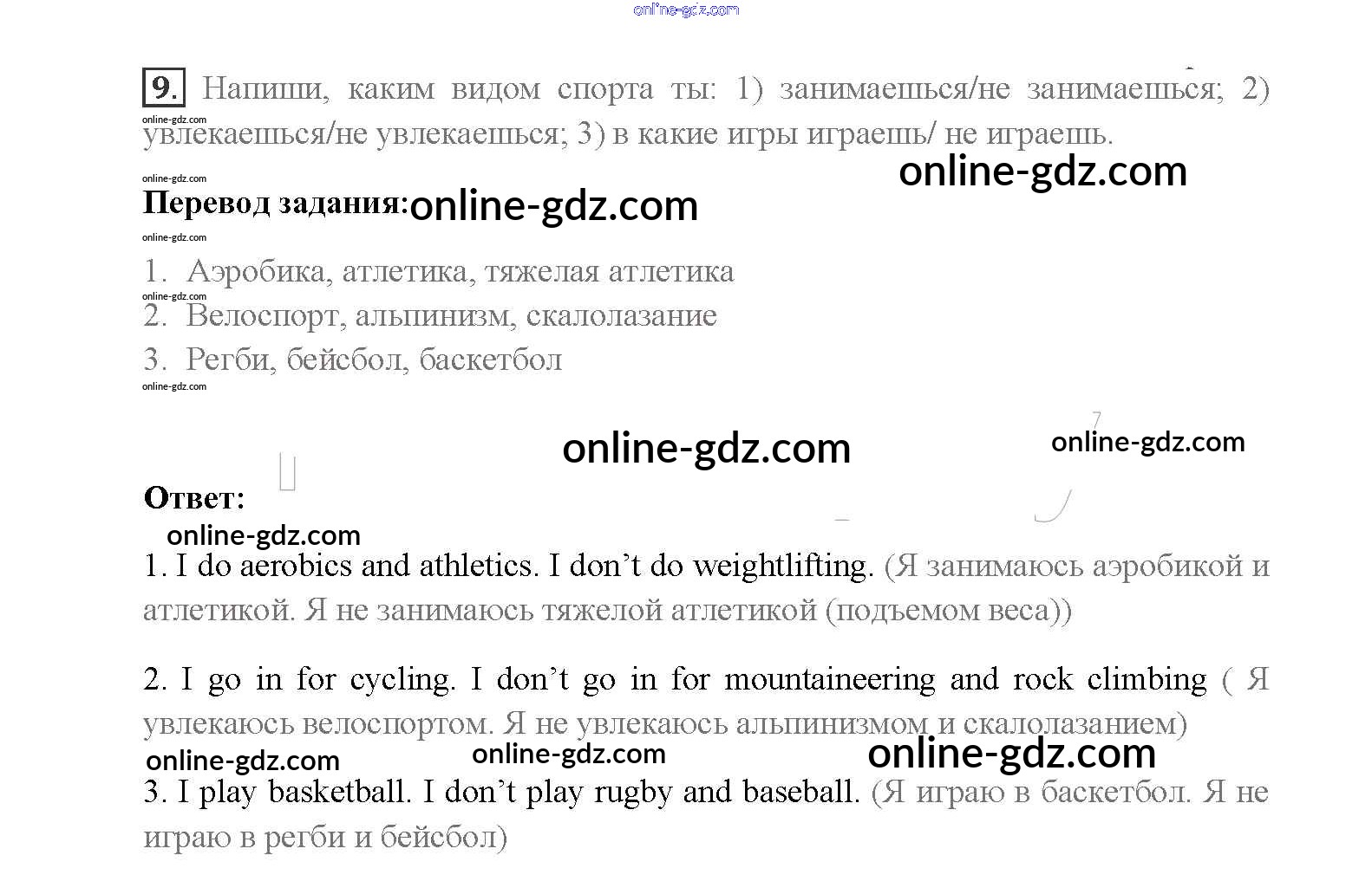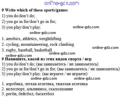 Готовые домашние задания по Английскому языку за 8 класс Учебник Афанасьева, Михеева Rainbow 2016 - Step 3 Unit 1. Sport and outdoor activities 9