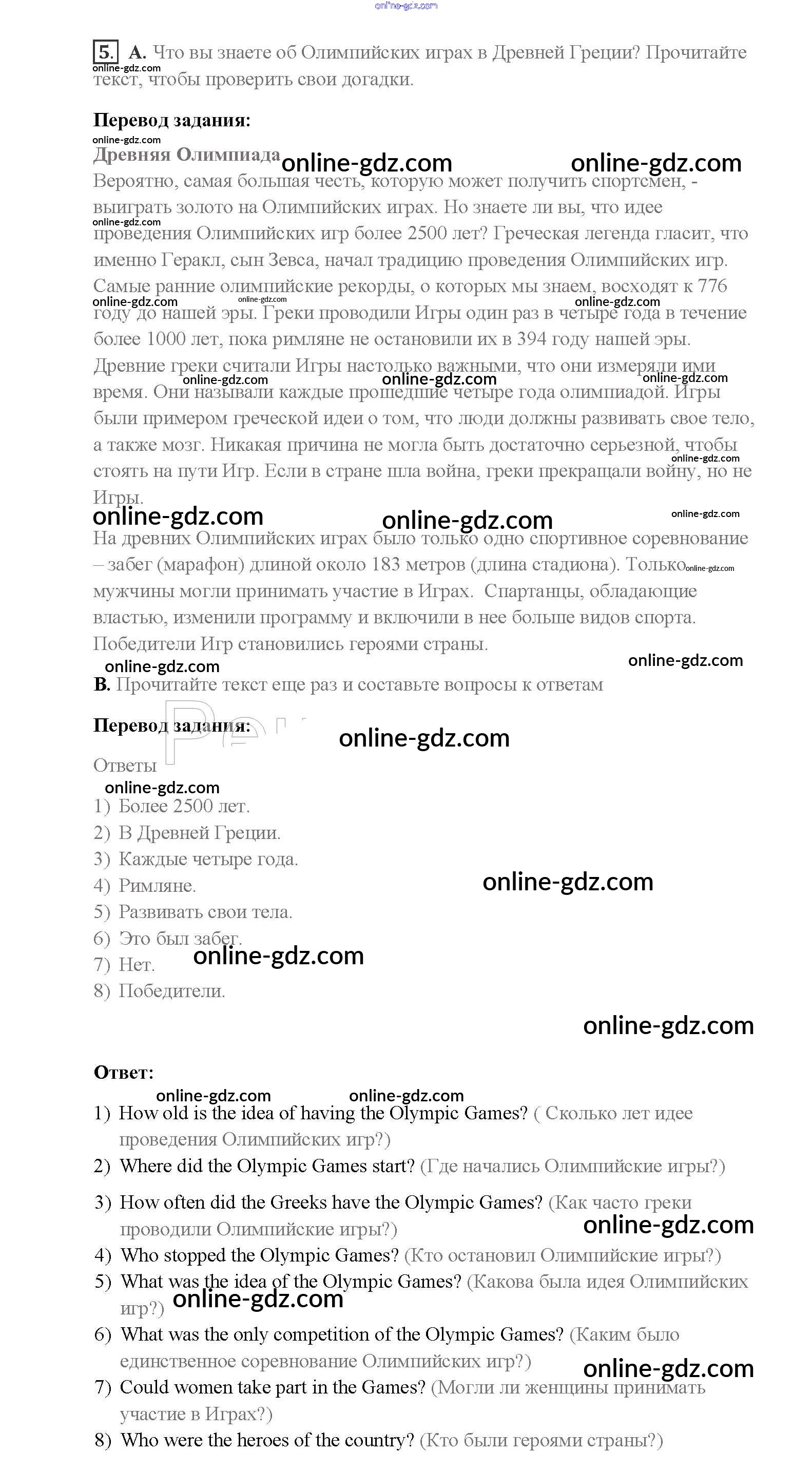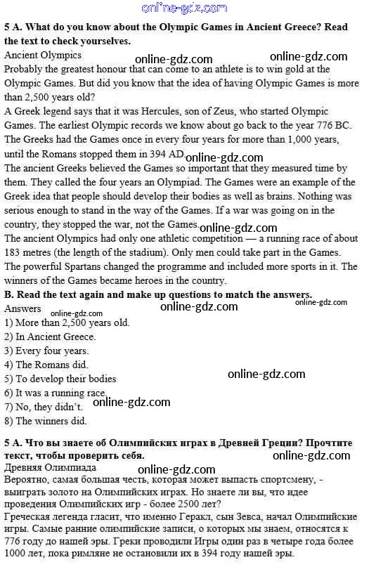 Готовые домашние задания по Английскому языку за 8 класс Учебник Афанасьева, Михеева Rainbow 2016 - Step 4 Unit 1. Sport and outdoor activities 5