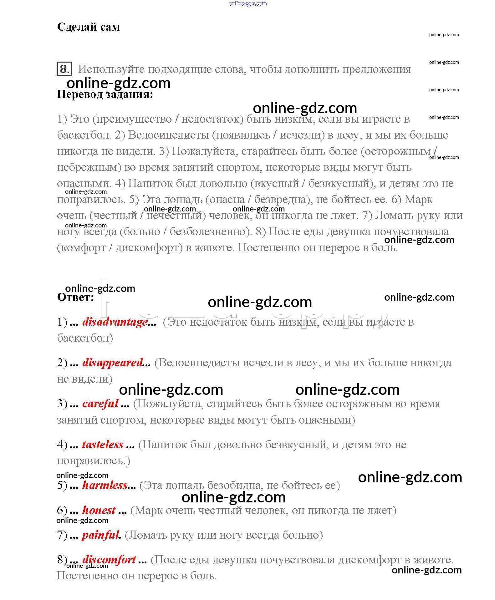 Готовые домашние задания по Английскому языку за 8 класс Учебник Афанасьева, Михеева Rainbow 2016 - Step 4 Unit 1. Sport and outdoor activities 8