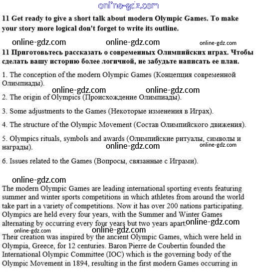 Готовые домашние задания по Английскому языку за 8 класс Учебник Афанасьева, Михеева Rainbow 2016 - Step 5 Unit 1. Sport and outdoor activities 11