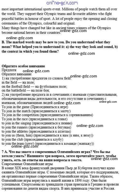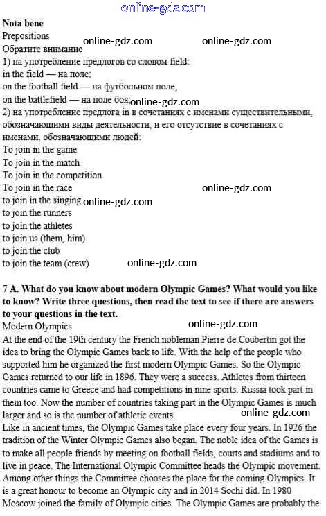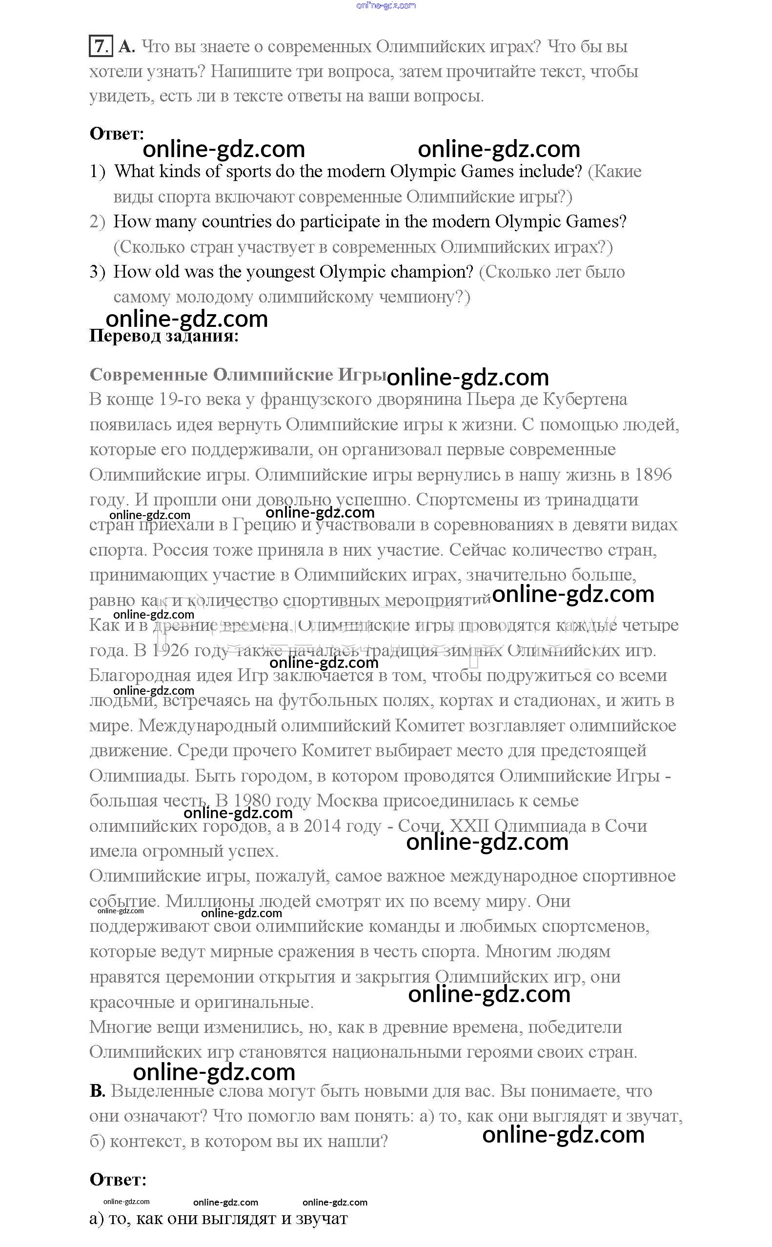 Готовые домашние задания по Английскому языку за 8 класс Учебник Афанасьева, Михеева Rainbow 2016 - Step 5 Unit 1. Sport and outdoor activities 7