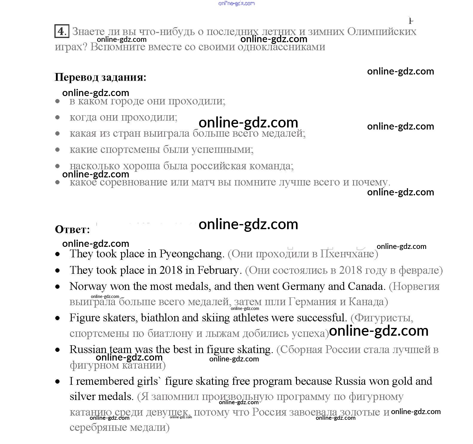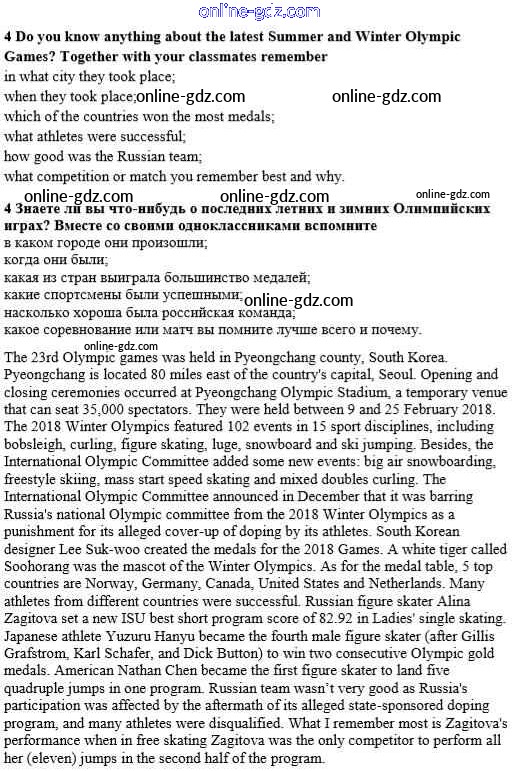 Готовые домашние задания по Английскому языку за 8 класс Учебник Афанасьева, Михеева Rainbow 2016 - Step 6 Unit 1. Sport and outdoor activities 4