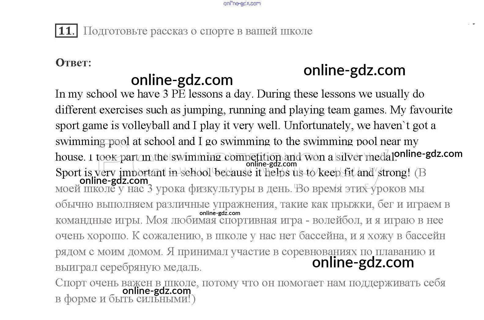 Готовые домашние задания по Английскому языку за 8 класс Учебник Афанасьева, Михеева Rainbow 2016 - Step 7 Unit 1. Sport and outdoor activities 11