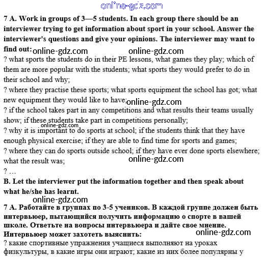 Готовые домашние задания по Английскому языку за 8 класс Учебник Афанасьева, Михеева Rainbow 2016 - Step 7 Unit 1. Sport and outdoor activities 7