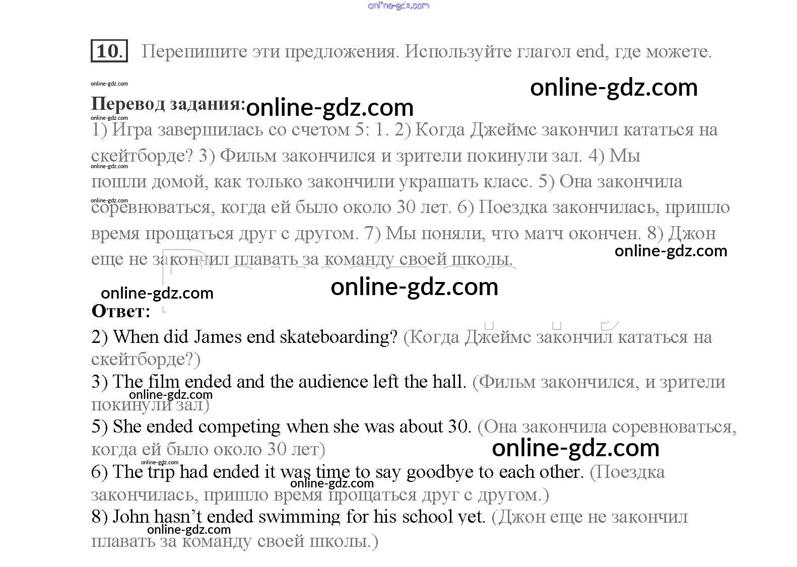 Готовые домашние задания по Английскому языку за 8 класс Учебник Афанасьева, Михеева Rainbow 2016 - Step 8 Unit 1. Sport and outdoor activities 10