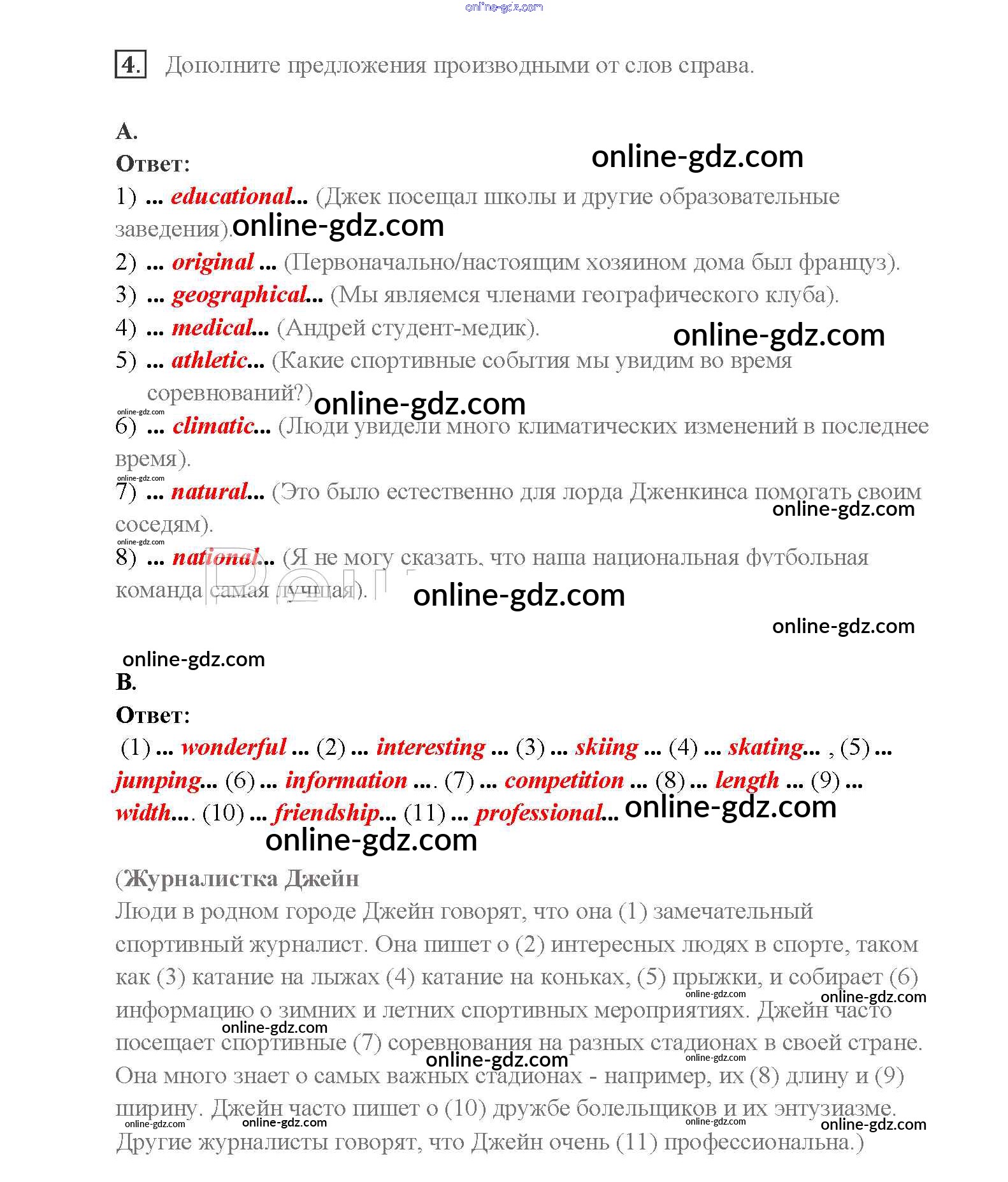 Готовые домашние задания по Английскому языку за 8 класс Учебник Афанасьева, Михеева Rainbow 2016 - Step 8 Unit 1. Sport and outdoor activities 4