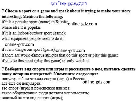 Готовые домашние задания по Английскому языку за 8 класс Учебник Афанасьева, Михеева Rainbow 2016 - Step 8 Unit 1. Sport and outdoor activities 7