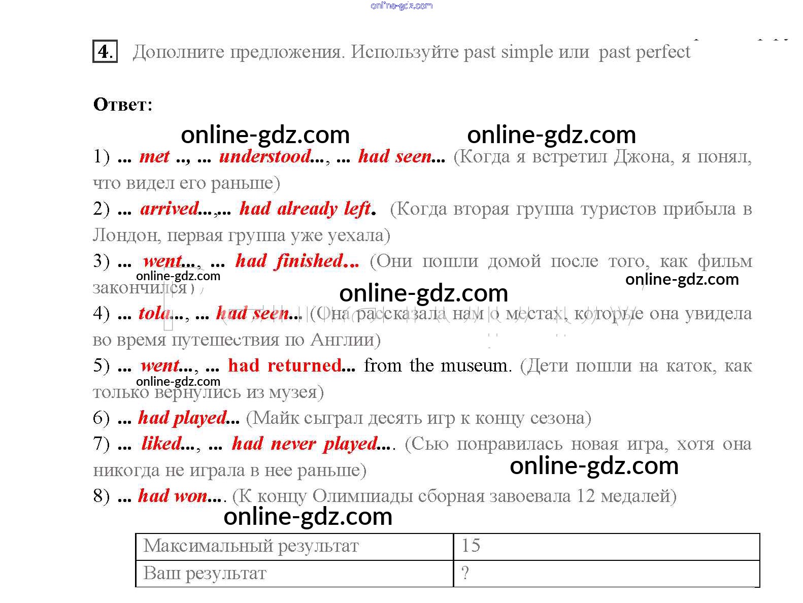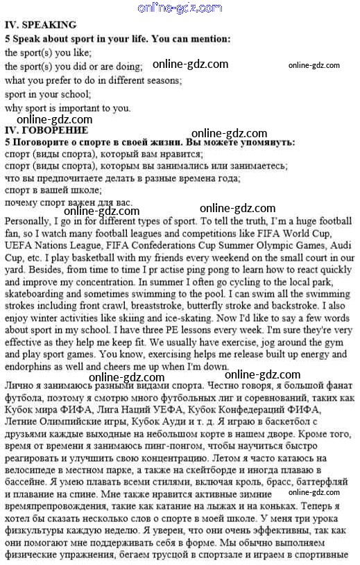 Готовые домашние задания по Английскому языку за 8 класс Учебник Афанасьева, Михеева Rainbow 2016 - Step 10 Unit 1. Sport and outdoor activities 4