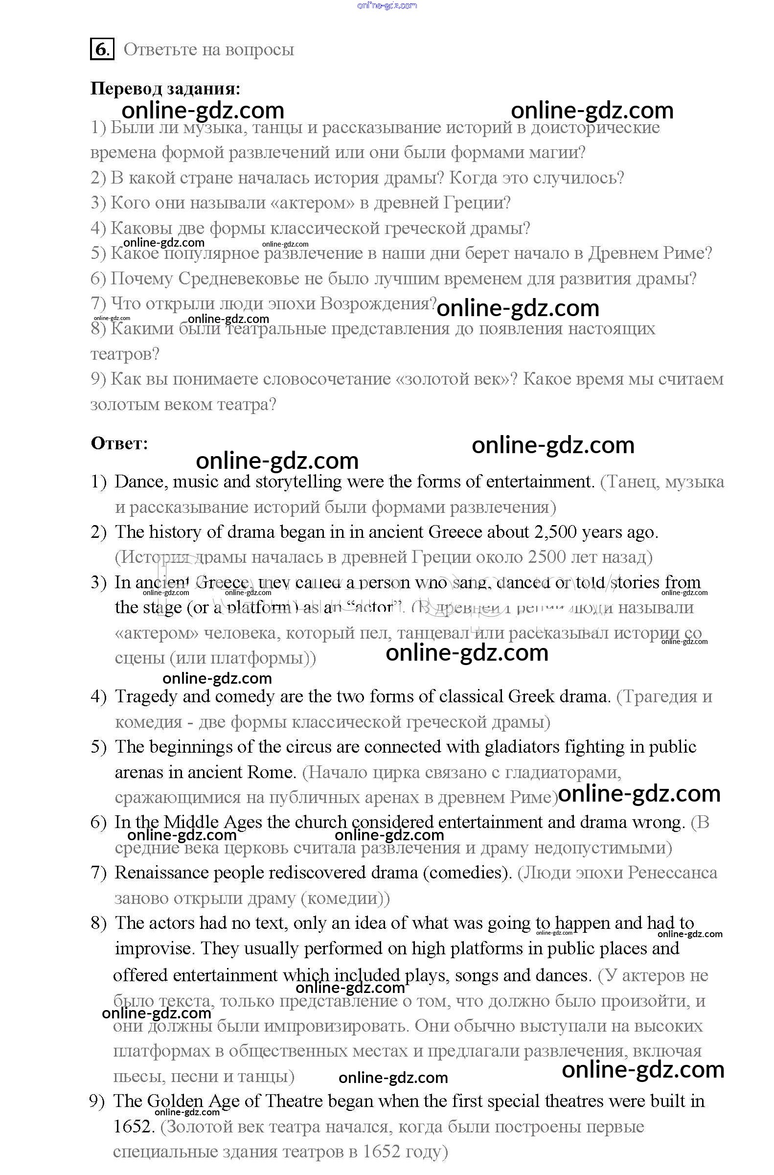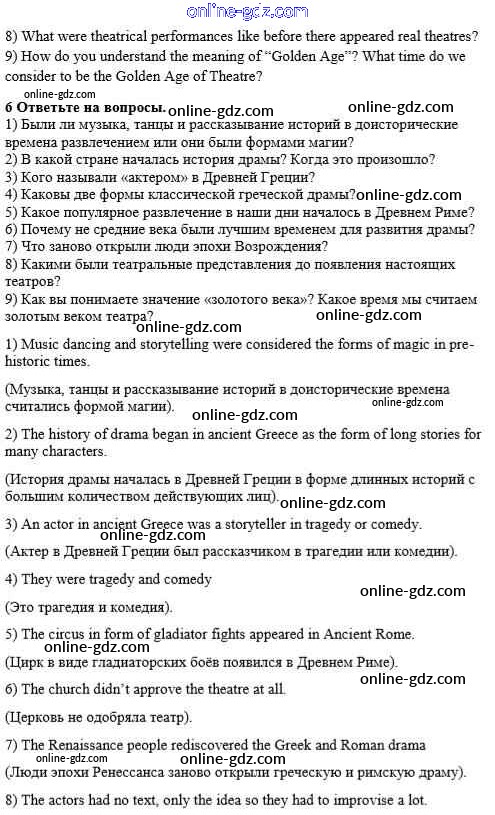 Готовые домашние задания по Английскому языку за 8 класс Учебник Афанасьева, Михеева Rainbow 2016 - Step 2 Unit 2. Performing arts: theatre 6
