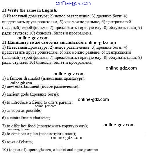 Готовые домашние задания по Английскому языку за 8 класс Учебник Афанасьева, Михеева Rainbow 2016 - Step 3 Unit 2. Performing arts: theatre 11