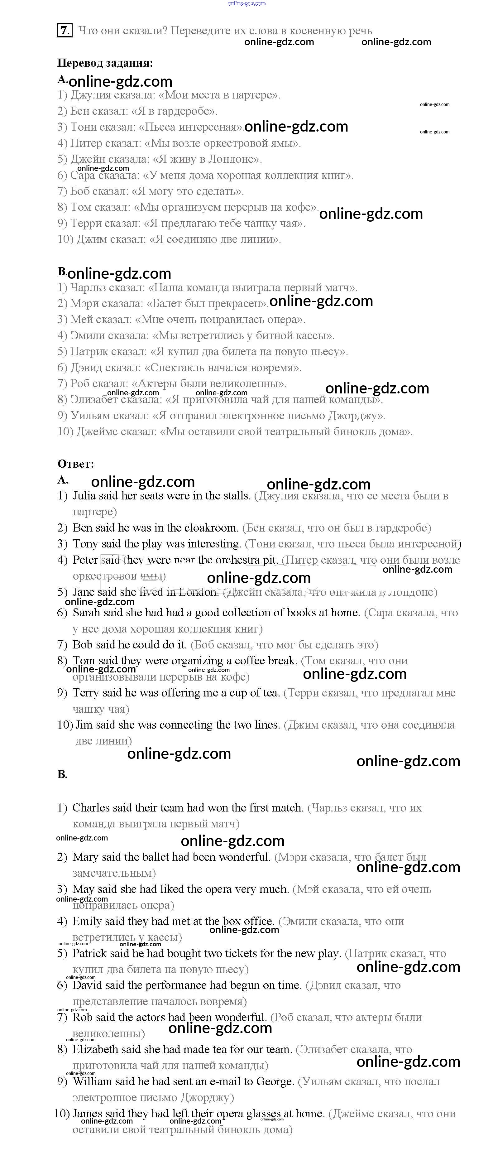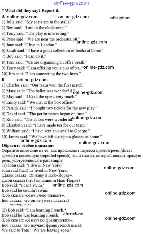 Готовые домашние задания по Английскому языку за 8 класс Учебник Афанасьева, Михеева Rainbow 2016 - Step 3 Unit 2. Performing arts: theatre 7