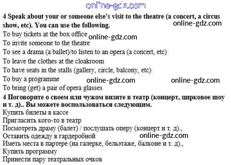 Готовые домашние задания по Английскому языку за 8 класс Учебник Афанасьева, Михеева Rainbow 2016 - Step 4 Unit 2. Performing arts: theatre 4