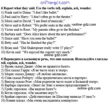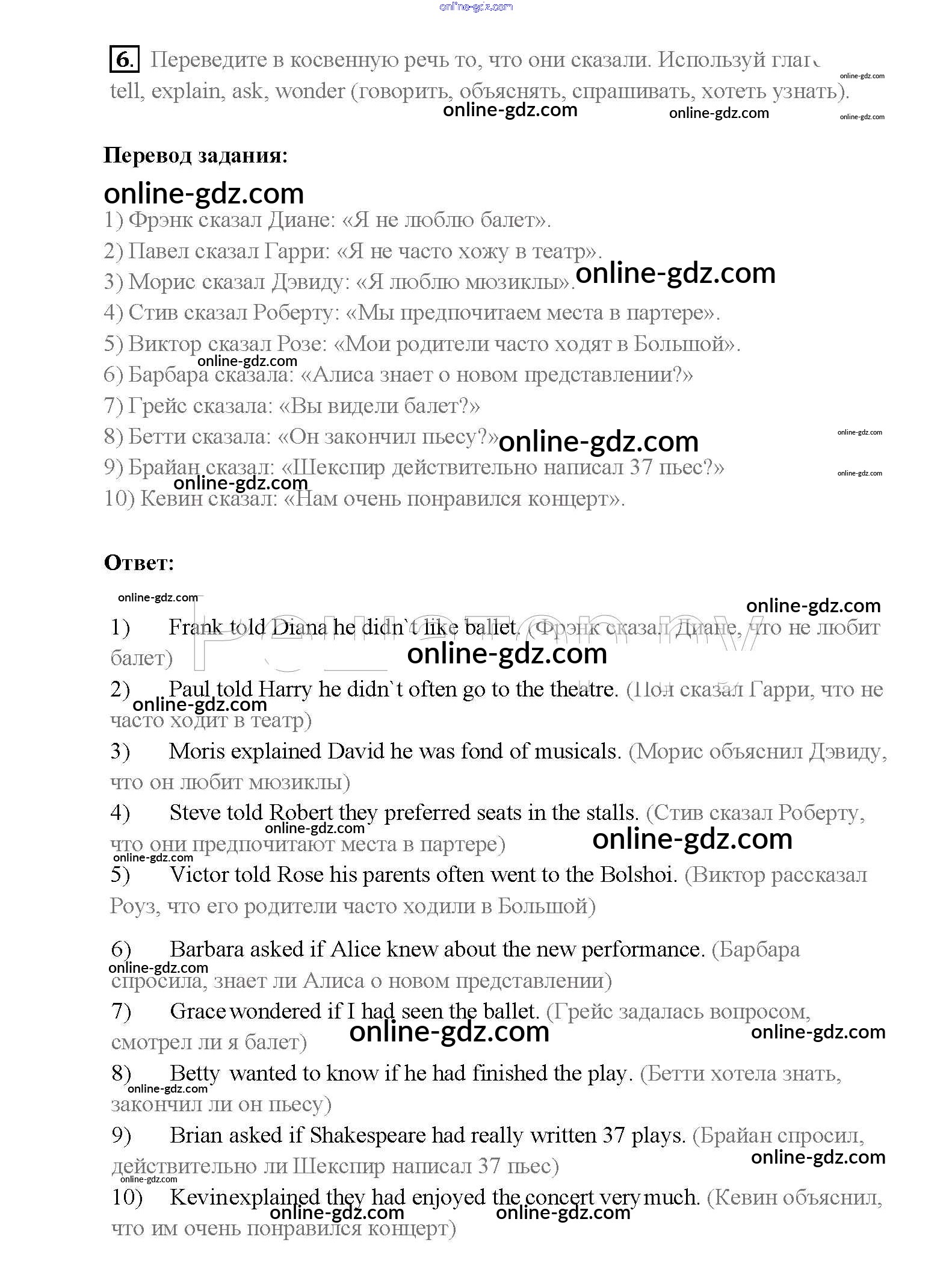 Готовые домашние задания по Английскому языку за 8 класс Учебник Афанасьева, Михеева Rainbow 2016 - Step 4 Unit 2. Performing arts: theatre 6