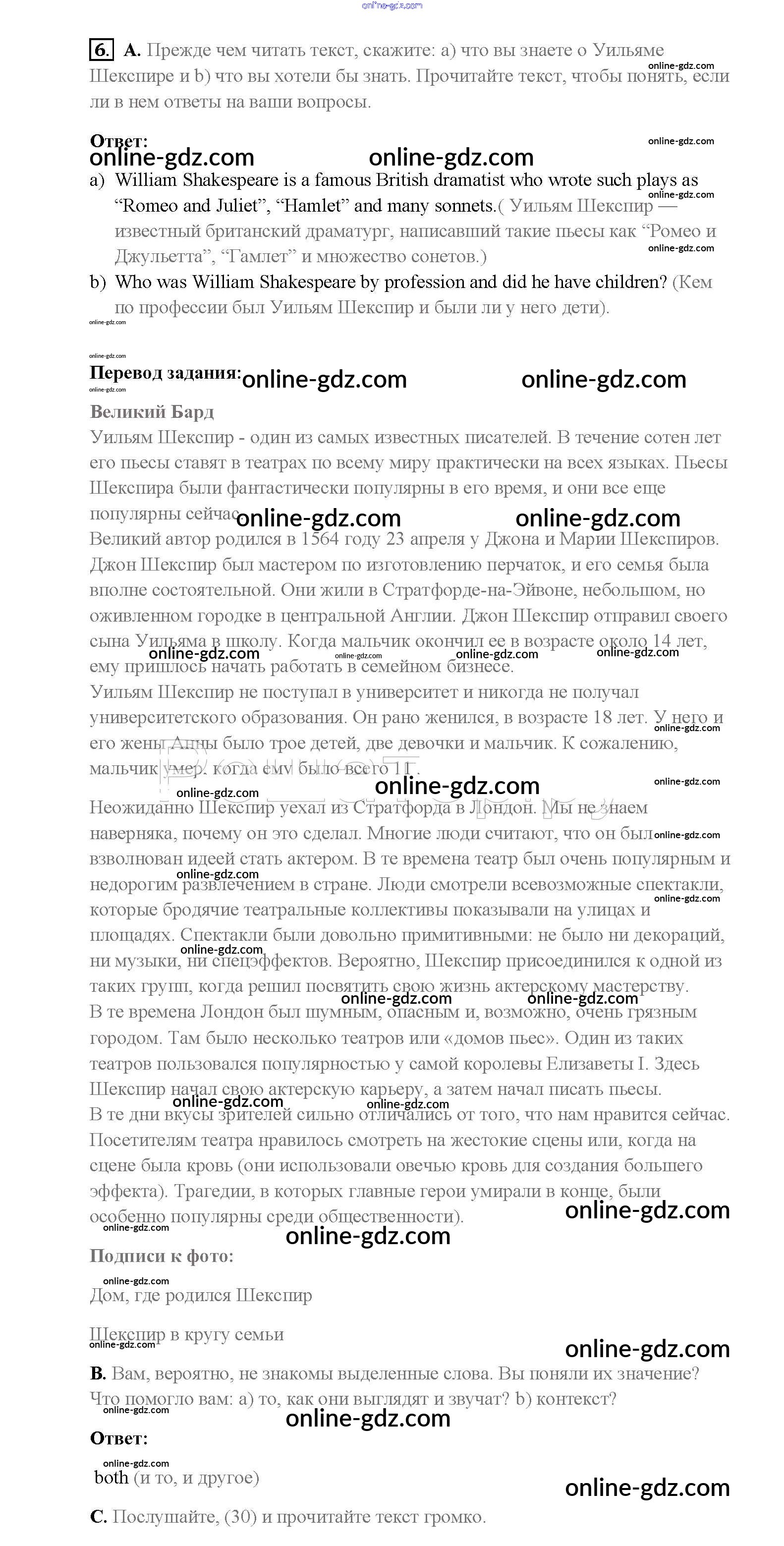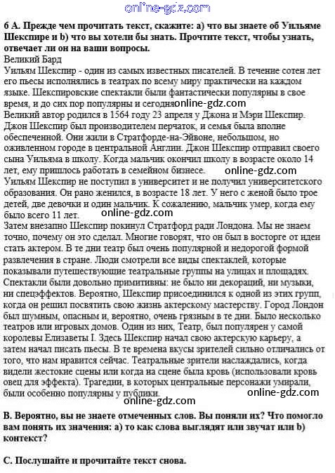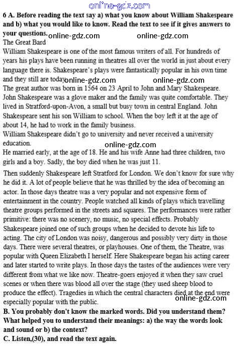 Готовые домашние задания по Английскому языку за 8 класс Учебник Афанасьева, Михеева Rainbow 2016 - Step 5 Unit 2. Performing arts: theatre 6