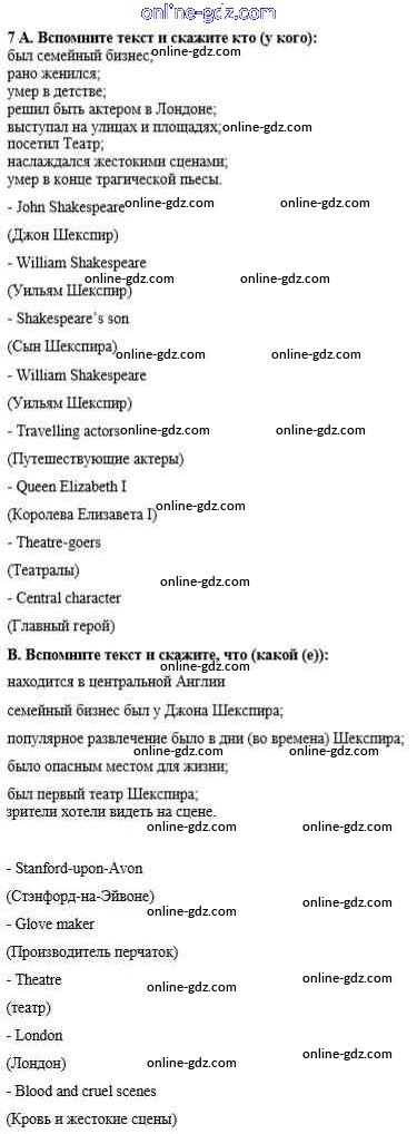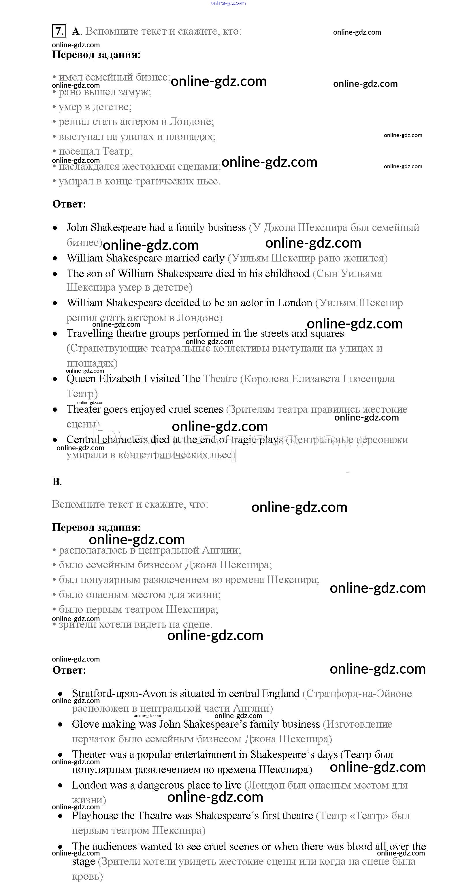 Готовые домашние задания по Английскому языку за 8 класс Учебник Афанасьева, Михеева Rainbow 2016 - Step 5 Unit 2. Performing arts: theatre 7