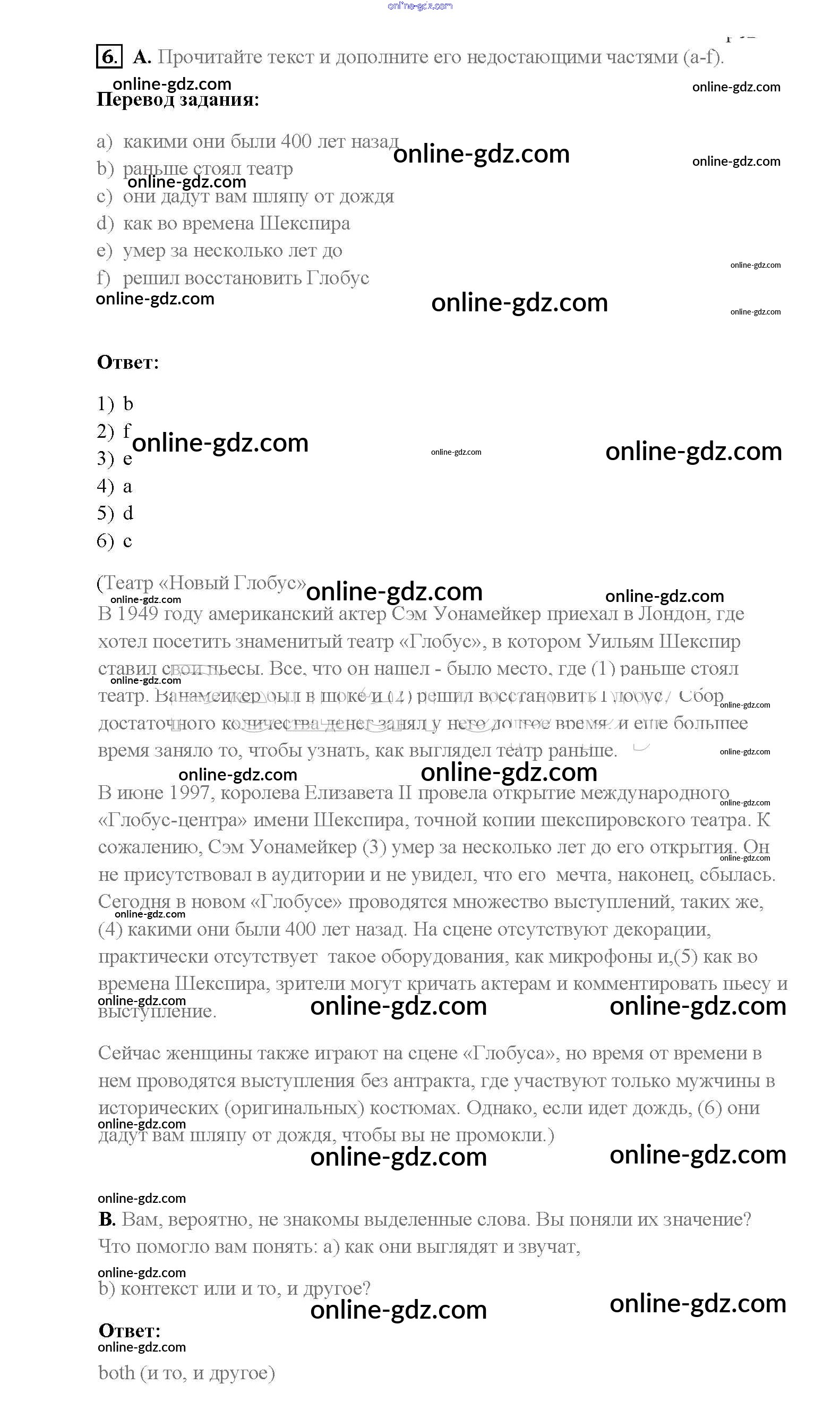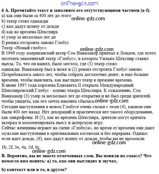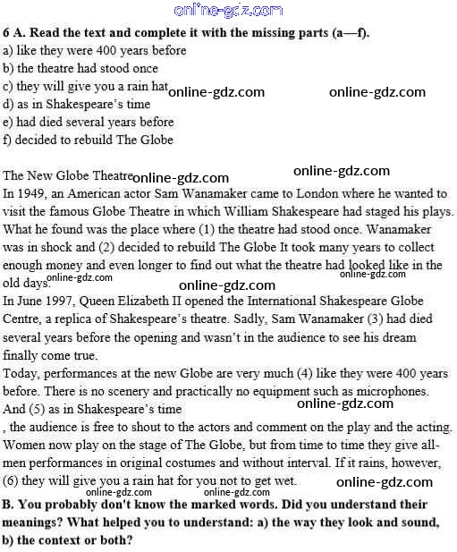 Готовые домашние задания по Английскому языку за 8 класс Учебник Афанасьева, Михеева Rainbow 2016 - Step 8 Unit 2. Performing arts: theatre 6