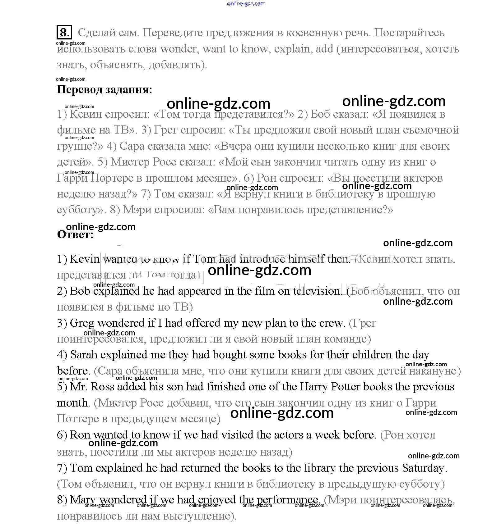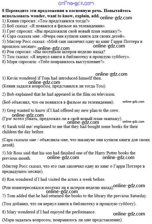 Готовые домашние задания по Английскому языку за 8 класс Учебник Афанасьева, Михеева Rainbow 2016 - Step 8 Unit 2. Performing arts: theatre 8