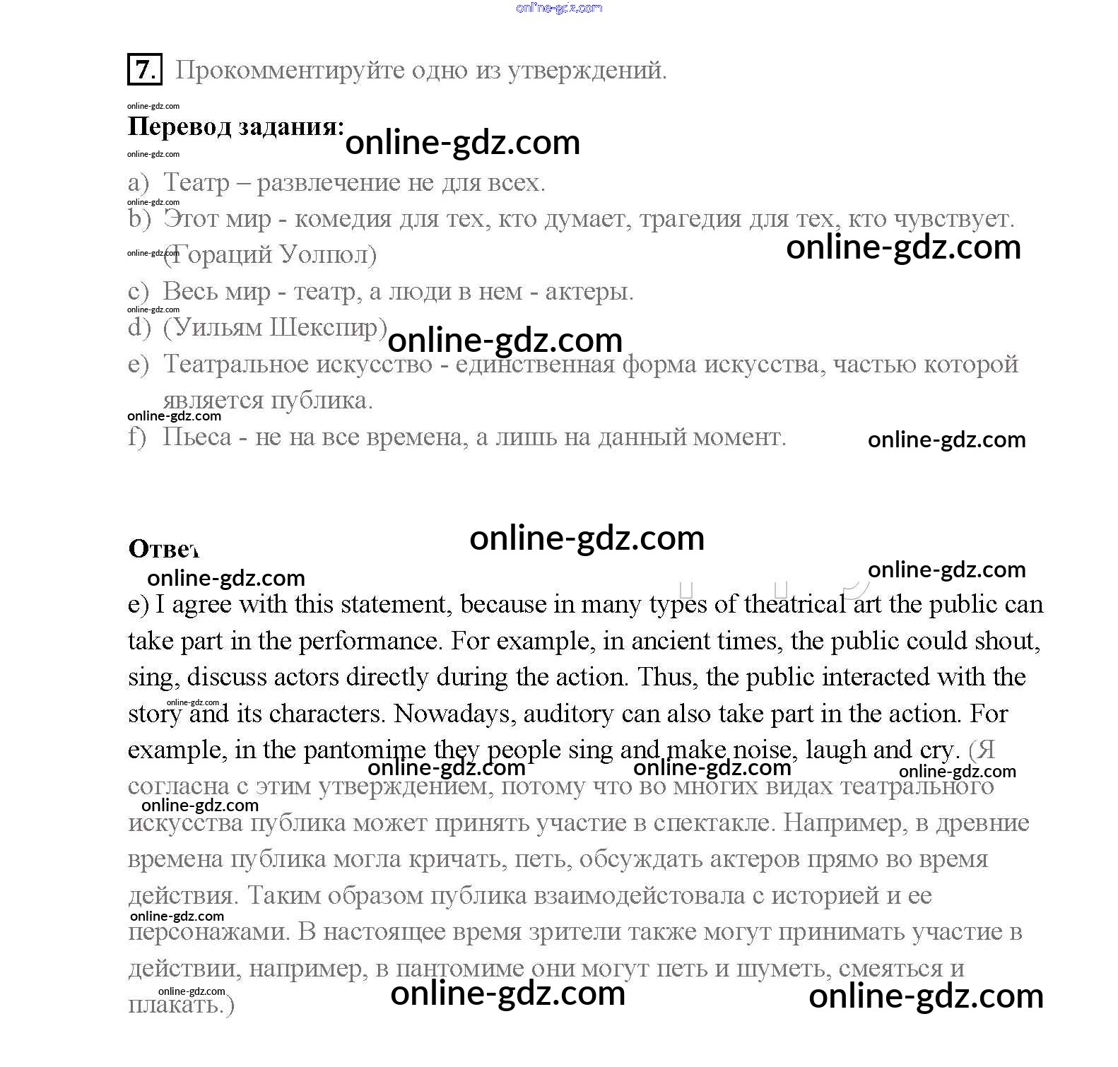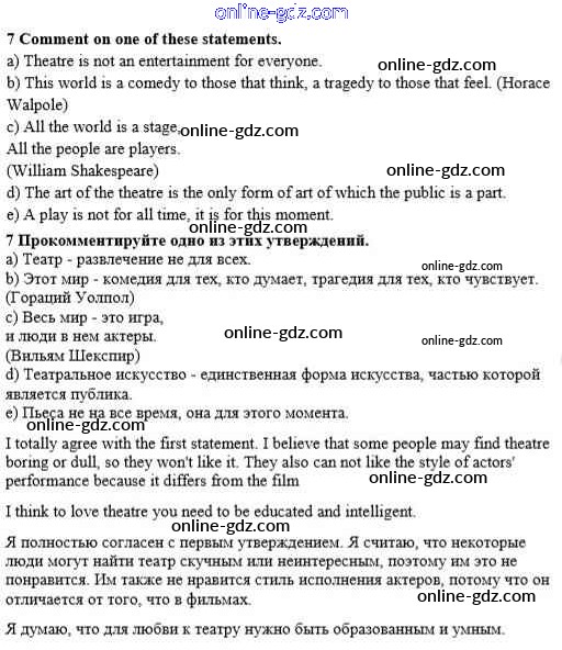 Готовые домашние задания по Английскому языку за 8 класс Учебник Афанасьева, Михеева Rainbow 2016 - Step 9 Unit 2. Performing arts: theatre 7