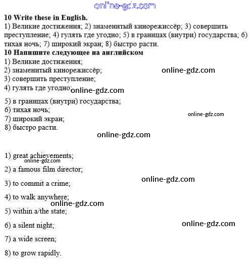 Готовые домашние задания по Английскому языку за 8 класс Учебник Афанасьева, Михеева Rainbow 2016 - Step 1 Unit 3. Performing arts: cinema 10