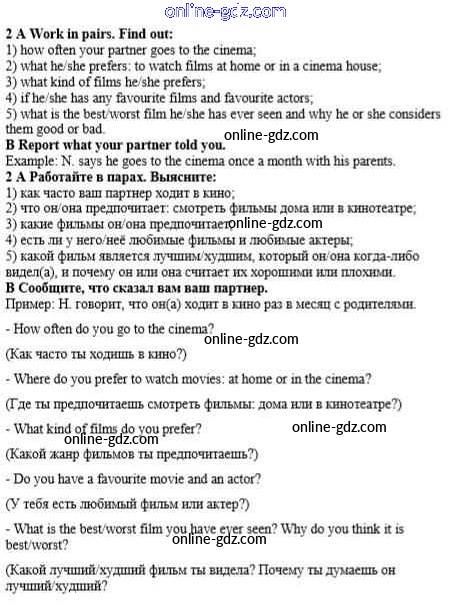 Готовые домашние задания по Английскому языку за 8 класс Учебник Афанасьева, Михеева Rainbow 2016 - Step 1 Unit 3. Performing arts: cinema 2