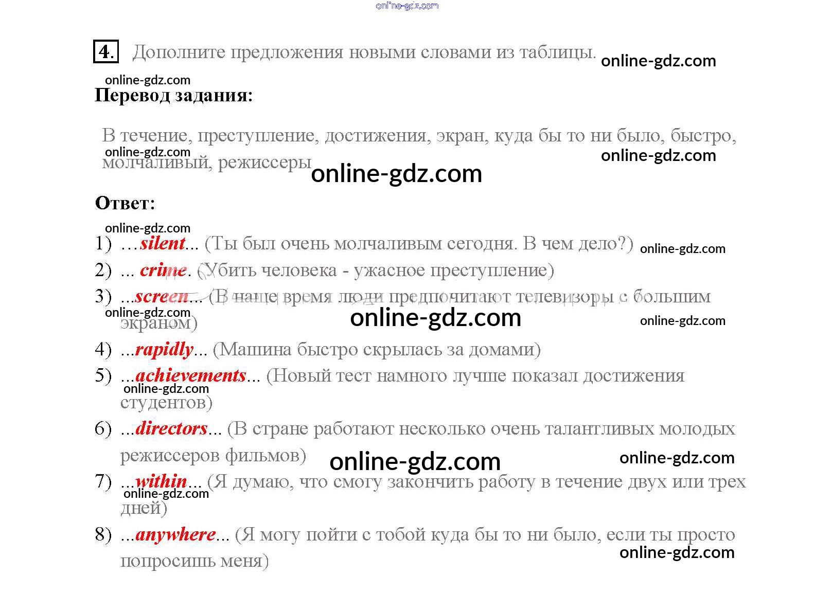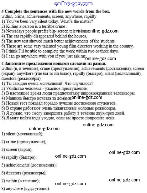 Готовые домашние задания по Английскому языку за 8 класс Учебник Афанасьева, Михеева Rainbow 2016 - Step 1 Unit 3. Performing arts: cinema 4