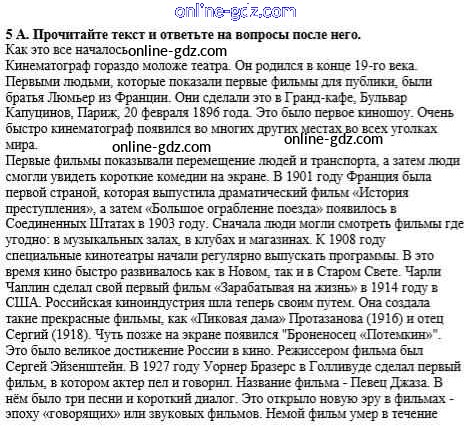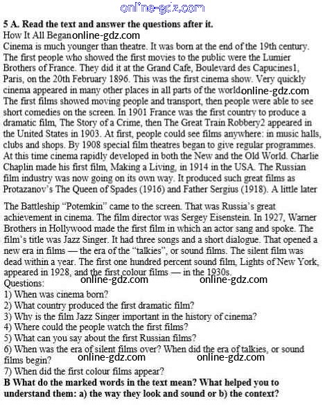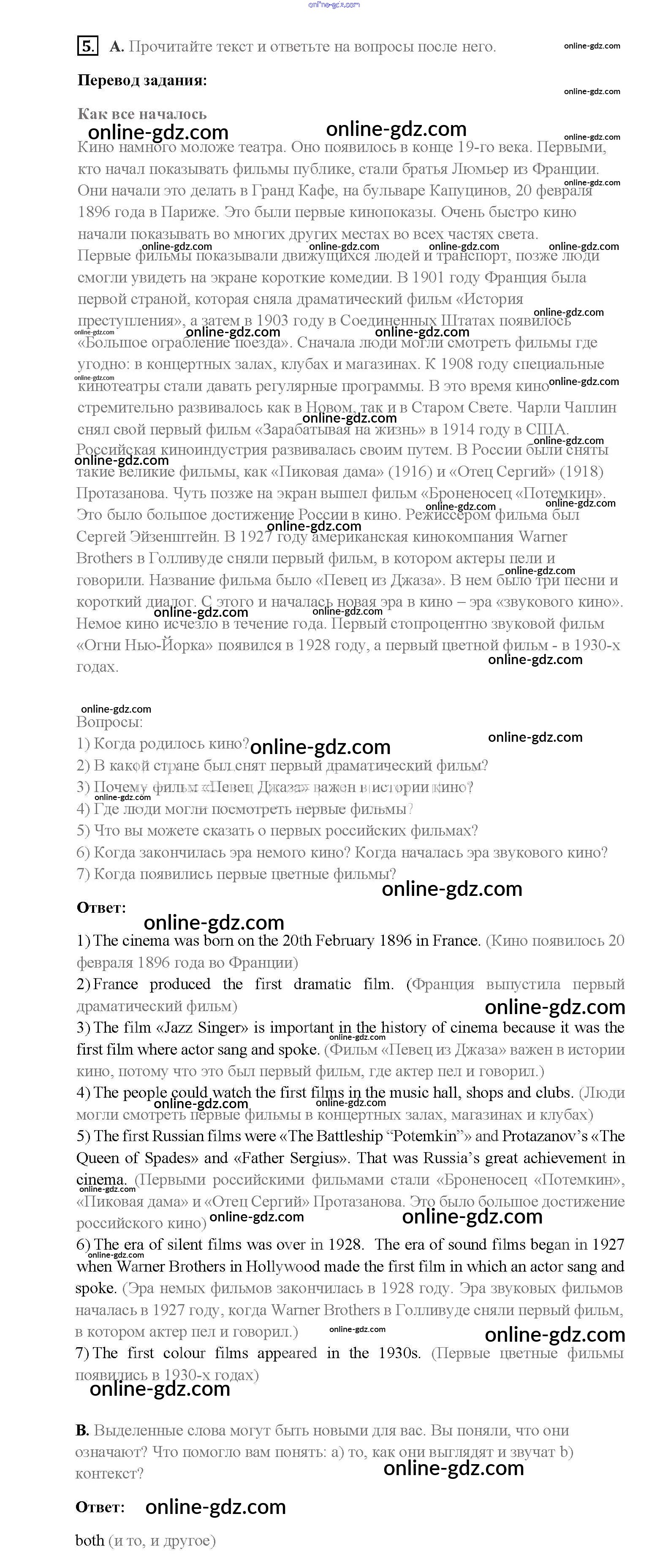 Готовые домашние задания по Английскому языку за 8 класс Учебник Афанасьева, Михеева Rainbow 2016 - Step 1 Unit 3. Performing arts: cinema 5