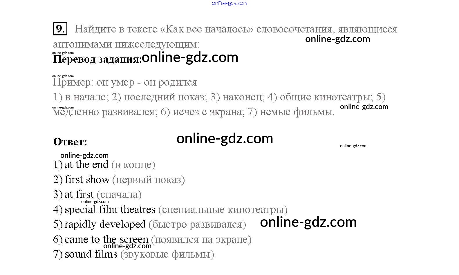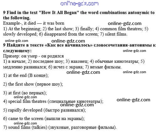 Готовые домашние задания по Английскому языку за 8 класс Учебник Афанасьева, Михеева Rainbow 2016 - Step 1 Unit 3. Performing arts: cinema 9