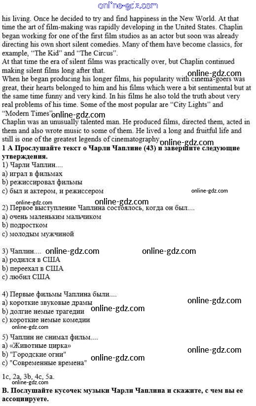 Готовые домашние задания по Английскому языку за 8 класс Учебник Афанасьева, Михеева Rainbow 2016 - Step 2 Unit 3. Performing arts: cinema 1
