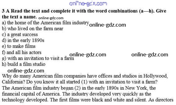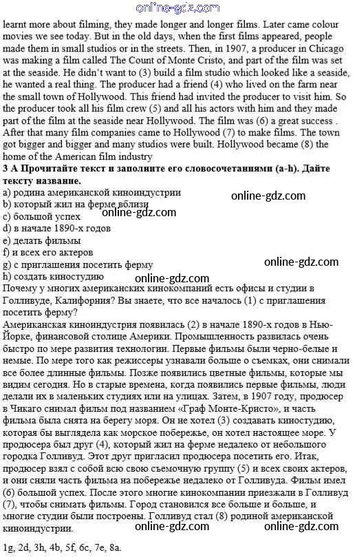 Готовые домашние задания по Английскому языку за 8 класс Учебник Афанасьева, Михеева Rainbow 2016 - Step 2 Unit 3. Performing arts: cinema 3
