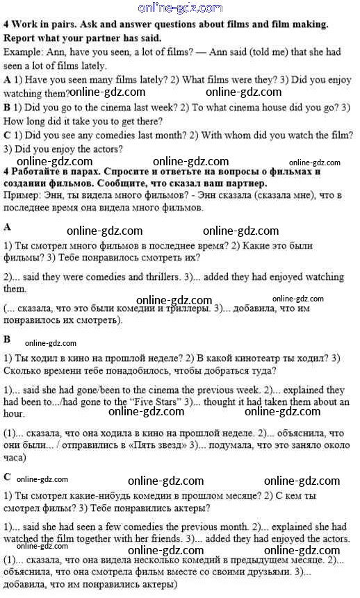 Готовые домашние задания по Английскому языку за 8 класс Учебник Афанасьева, Михеева Rainbow 2016 - Step 2 Unit 3. Performing arts: cinema 4