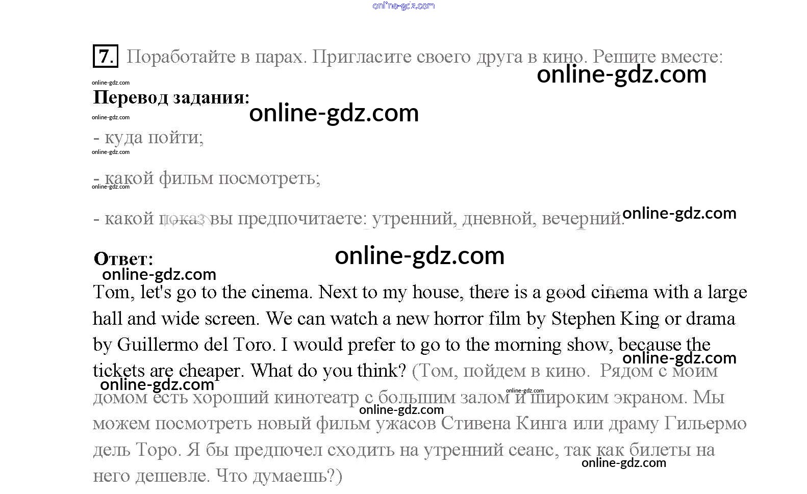 Готовые домашние задания по Английскому языку за 8 класс Учебник Афанасьева, Михеева Rainbow 2016 - Step 2 Unit 3. Performing arts: cinema 7