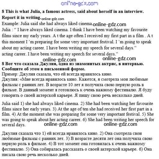 Готовые домашние задания по Английскому языку за 8 класс Учебник Афанасьева, Михеева Rainbow 2016 - Step 2 Unit 3. Performing arts: cinema 8