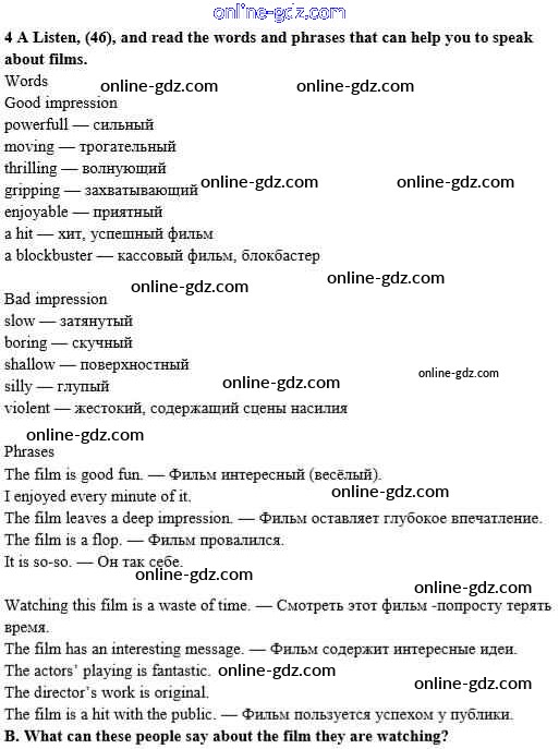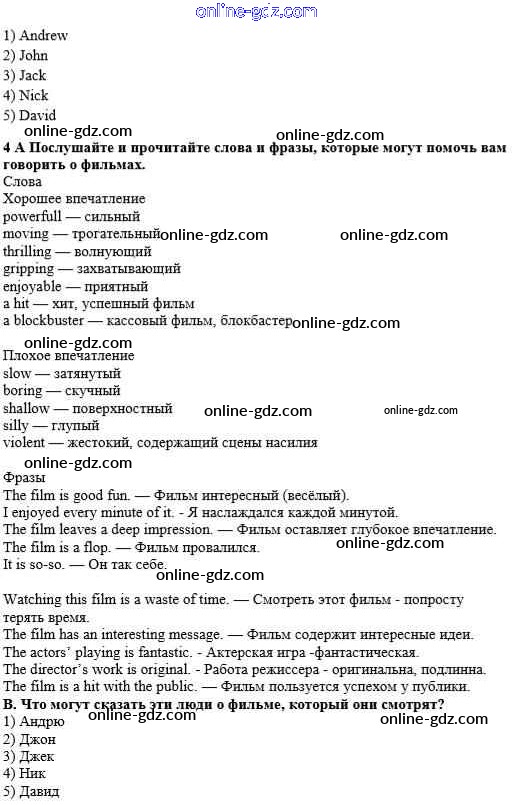 Готовые домашние задания по Английскому языку за 8 класс Учебник Афанасьева, Михеева Rainbow 2016 - Step 3 Unit 3. Performing arts: cinema 4