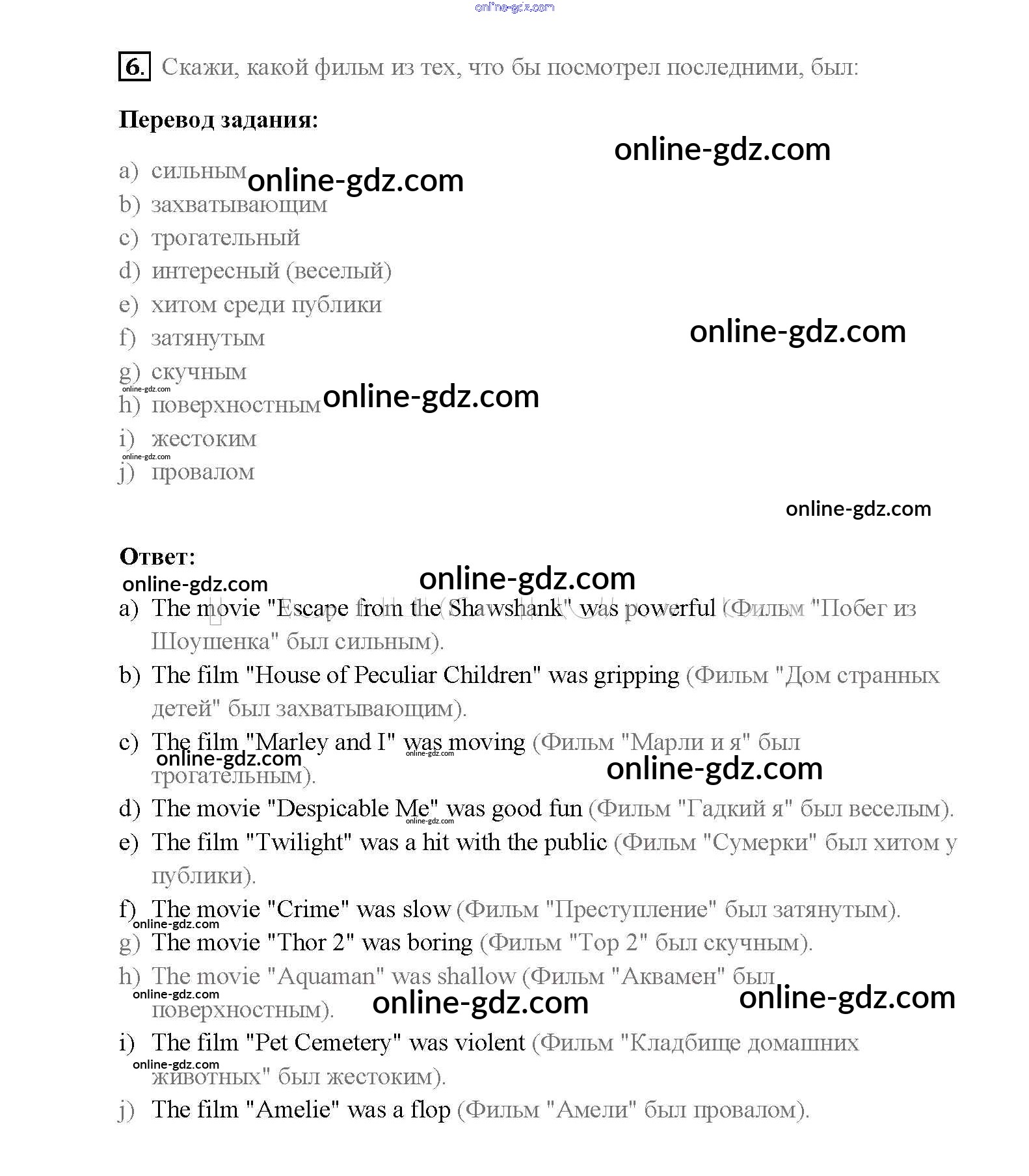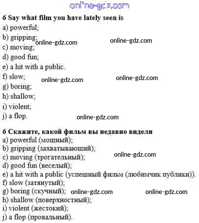 Готовые домашние задания по Английскому языку за 8 класс Учебник Афанасьева, Михеева Rainbow 2016 - Step 3 Unit 3. Performing arts: cinema 6